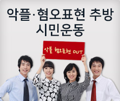 악플·혐오표현 추방 시민운동증오범죄를 양산하는 ‘악플’과 ‘혐오표현’ 추방에 동참해주세요.