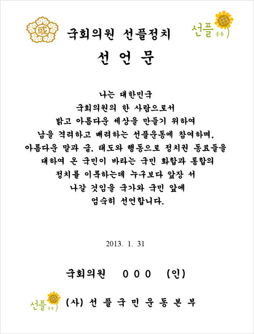 국회선플위원회 공동위원장 : 서상기, 김춘진